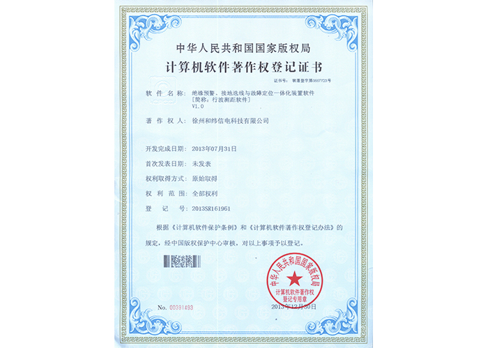 2013SR161961 絕緣預警、接地選線與故障定位一體化裝置軟件V1.0
