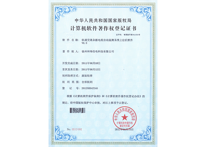 2012SR042246 軌道交通雜散電流自動監(jiān)測系統(tǒng)上位機軟件V6.0